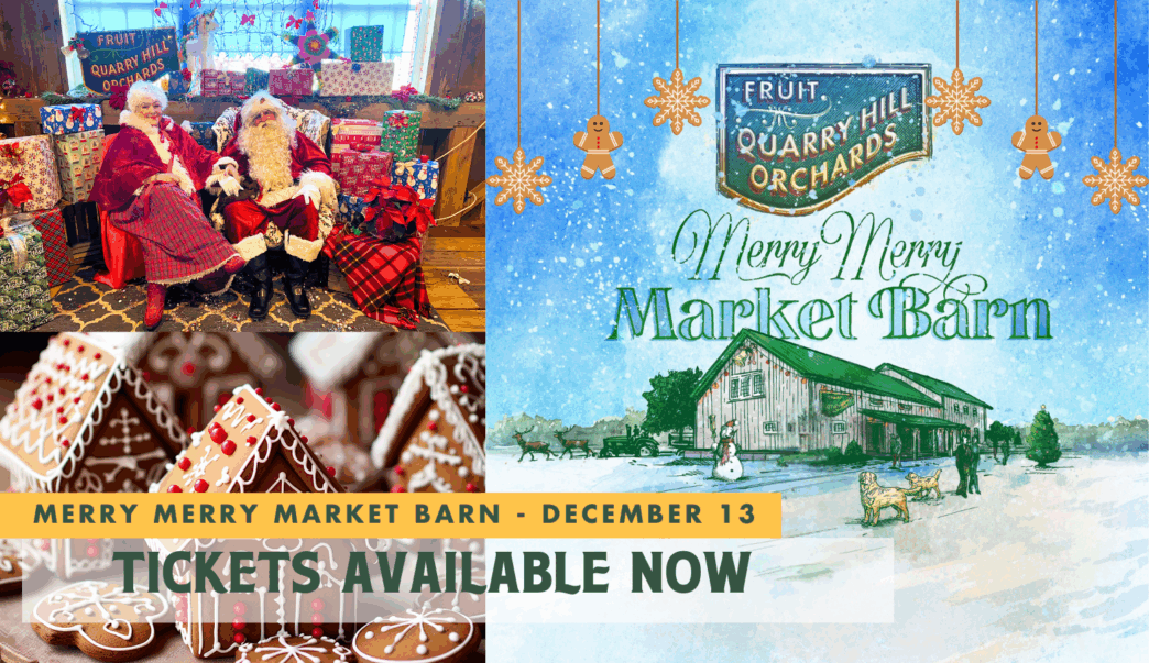 The heart of Quarry Hill is our bustling market barn, where you can try our delicious fruit; purchase local produce; sip warm cider; meet our family, neighbors, and friendly dogs; and sample farm-made goods from our community. Come see for yourself and be a part of the tradition — take a wagon ride through the orchards; walk the rows, picking your own fruit; and visit the Winery for a glass of wine from vineyards right at Quarry Hill.