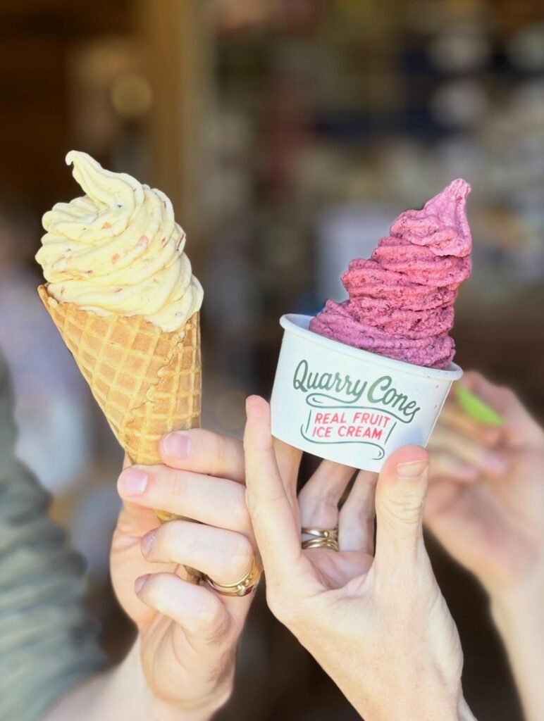 swirled with vanilla ice cream, made right in front of you! You can taste the whole harvest in a Quarry Cones swirl. Stop by the Scoop Shop in the Market Barn to enjoy, linger together, and make memories.