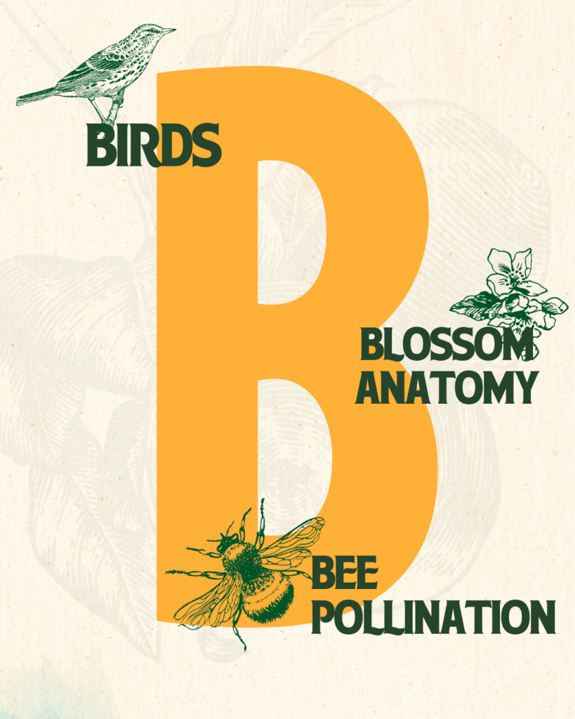- Learn about the role that birds and pollination by bees plays in our orchard. We’ll also share details on blossom anatomy for different fruit trees on our property.